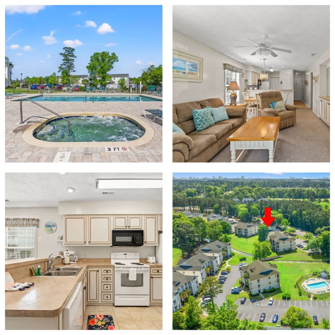 Experience the stylish charm of Myrtle Beach! Our 3rd floor 2BR/2BA apartment offers comfort with inviting living spaces. Just 5 miles from the ocean, it's ideal for both golfers and families. 🛏️ 2 BRs (1 king, 1 queen, 1 full XL) 🛁 2 Bathrooms (newly renovated) 🏖️ Balcony with Wooded View 🍽️ Fully Equipped Kitchen 📺 2 SMART TVs 🌐 Fast Wi-Fi 🏊♀️ Pool & Hot Tub & Grill Outside 🎮 Table Games 🚗 Free Parking Experience the charm of Myrtle Beach for a perfect coastal getaway! 🌞🌊
