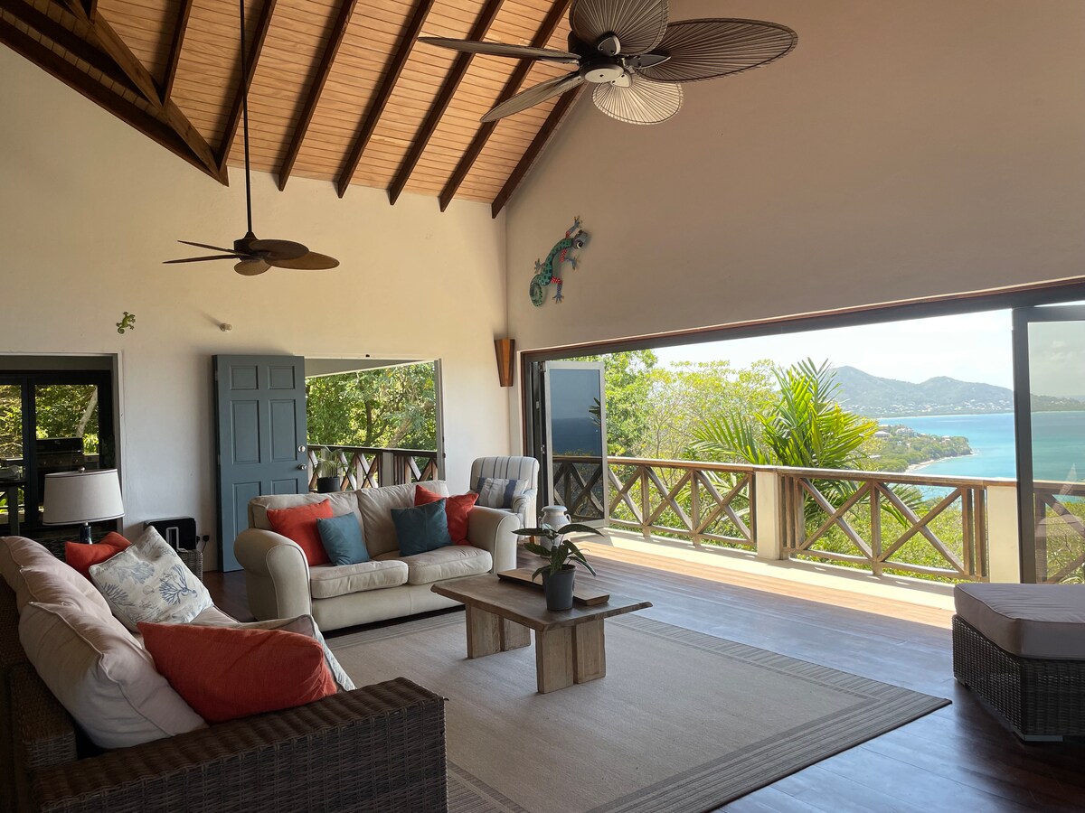 Prospect House sits in the hills in the north of Carriacou, cooled by the sea breeze & surrounded by forest for absolute peace. The Garden Apartment is beautifully appointed, modern & spacious. All rooms open directly onto the large private west-facing balcony with spectacular views out to sea over tropical gardens. Luxury bathroom fittings, toiletries and linens are supplied. Guests have free use of the stunning infinity pool and sun deck.