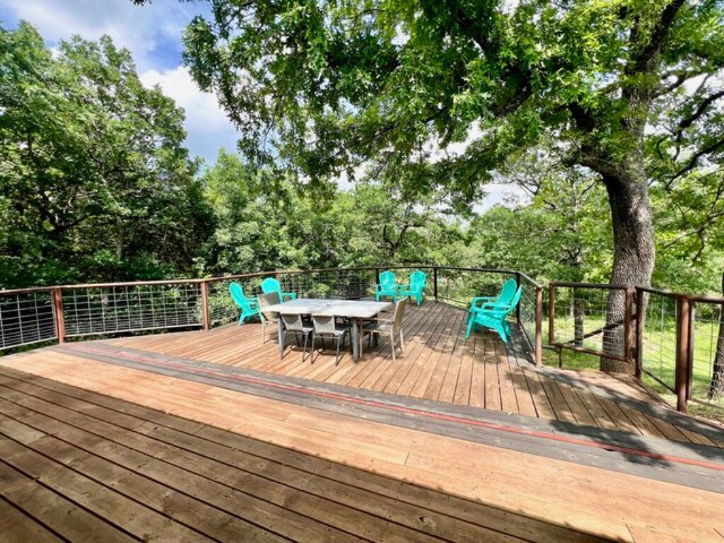 Escape from the hustle & bustle to relax at this spacious luxury cabin located in the Arbuckle Mountains. This property can sleep up to 10 and has a sister property with in walking distance that can be rented for additional family and friends that will accommodate up to 6 guests. Unwind and relax outdoors or take a dip in the 6 person hot tub! Tell stories while enjoying your s'mores around the outdoor fire pit. Play cornhole, frisbee golf or Jumbo Jenga! Minutes from Guy Sandy boat ramp.