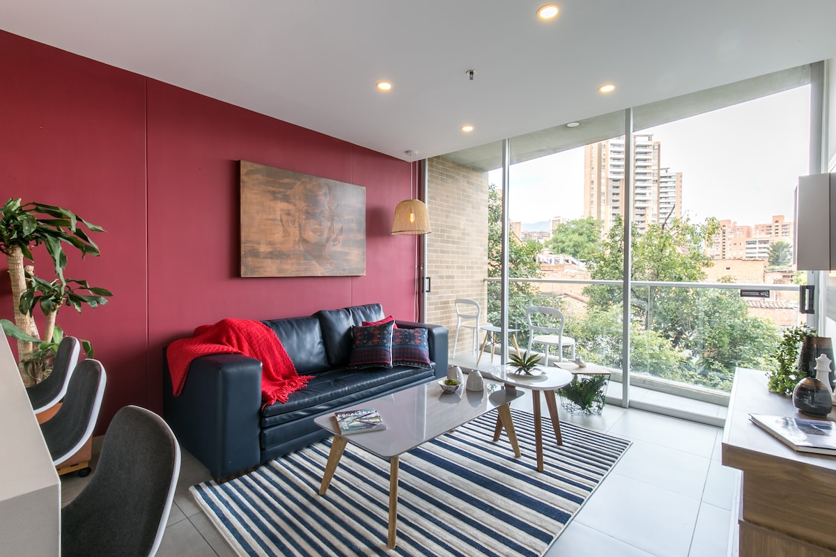 [Luxe Living* Loft] Poblado AC|400 Mb WiFi|King Bed