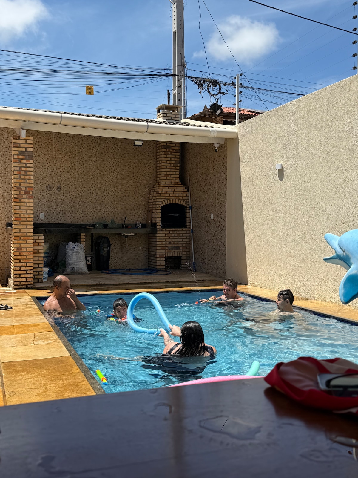 Great place to rest and relax. Cozy, duplex house, with 200m² of built area, 900 meters of total area, ample outdoor space, swimming pool, deck with barbecue, gardens, lawn and balconies. It is less than a block from the beach, centrally located, close to Donana, Jangadeiro, Pousada do Sol Hotels and “Mangue Seco” market. It has 4 bedrooms, 3 of which are en-suites. Note: it has Wi-Fi! *It is 50 minutes from Pinto Martins airport and 60 minutes from Aldeota.