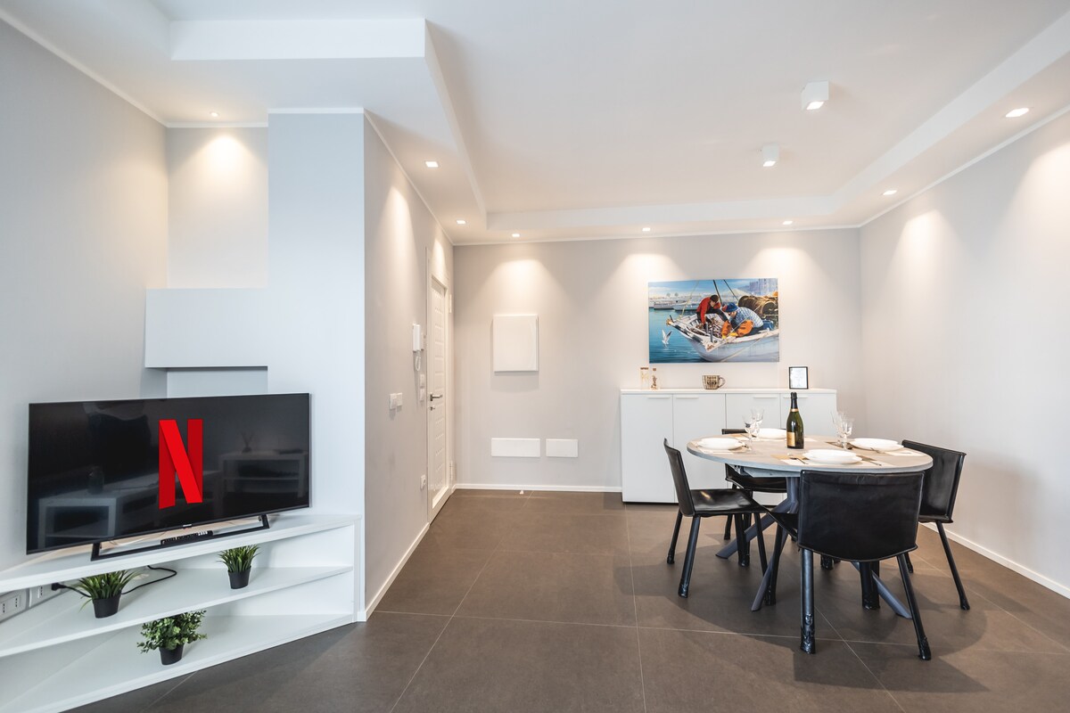 Bright apartment a few steps from the sea, in a residential area, equipped with a large double bedroom with Smart TV and Netflix, equipped kitchen, elegant living room with TV, spacious furnished terrace, Wi-Fi, free parking in the area, located on the 3rd floor without elevator.