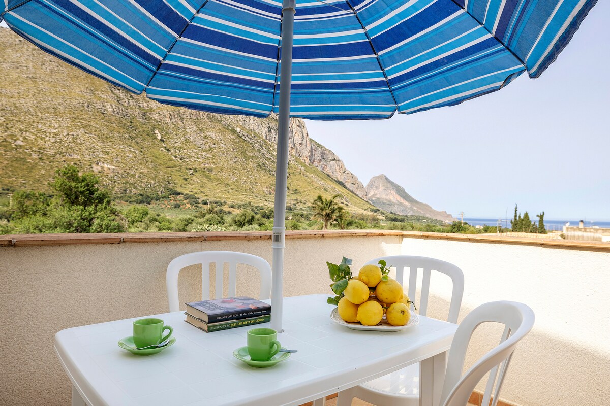 You will stay on the ground floor of my villa, a 3-minute walk from the sea, consisting of two separate apartments. *You will not share all outdoor spaces with other guests*. The apartment has a large outdoor space with a dining table, sofas and deckchairs, and private parking. The villa is located in one of the most picturesque areas of Scopello, 200 meters from the beautiful beach of Cala Mazzo di Sciacca, and is surrounded by a large tree-lined garden and a picturesque sea view