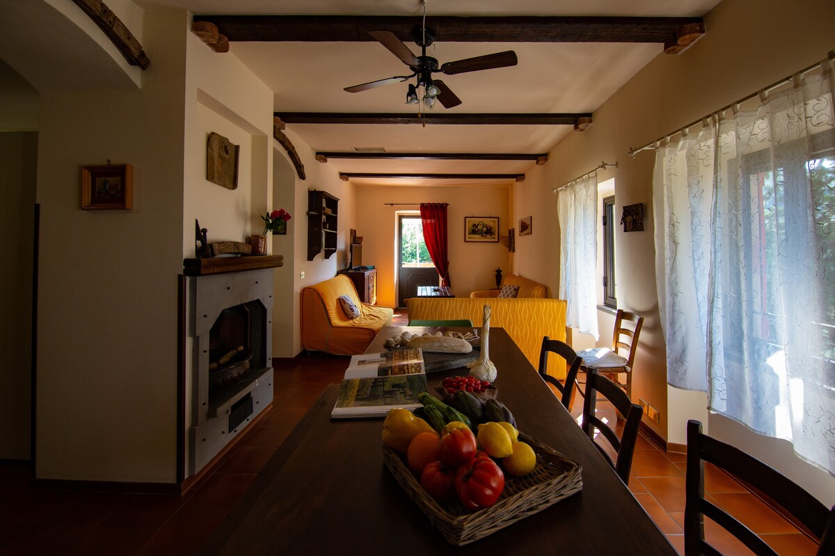 Pour yourself a glass of wine and sit next to the fireplace of this open space with a warm Tuscan atmosphere: wooden beams, terracotta floors, stone walls. Then go outside and admire the magnificent view of the Valdichiana. Pour yourself a glass of wine and sit next to the fireplace of this open space with a warm Tuscan atmosphere: wooden beams, terracotta floors, and stone walls. Enjoy yourself and relax! Then go out and admire the magnificent view of the Valdichiana Valley.