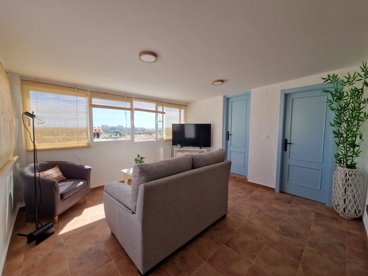 Newly remodeled, modern, spacious vacation home for up to 6 people located on the Costa Tropical (Granadina)- spectacular views of the Mediterranean Sea, white town of Salobreña, Moorish Castle and the mountains, close to beaches, nature, cultural attractions and amenities.