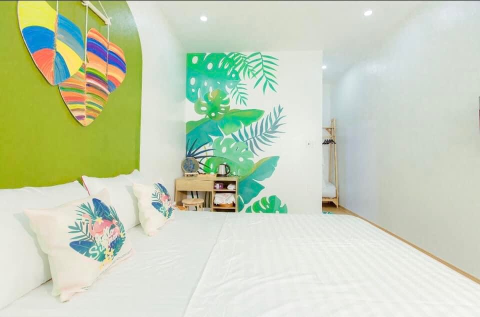 Điểm nhấn của Green Homestay là thiết kế mộc mạc, thoải mái cùng bể bơi ngoài trời giữa khu vườn xanh, nơi bạn có thể thỏa thích thư giãn sau một ngày khám phá đảo. Các phòng nghỉ được trang bị tiện nghi đầy đủ, sạch sẽ, tạo cảm giác ấm cúng như ở nhà.