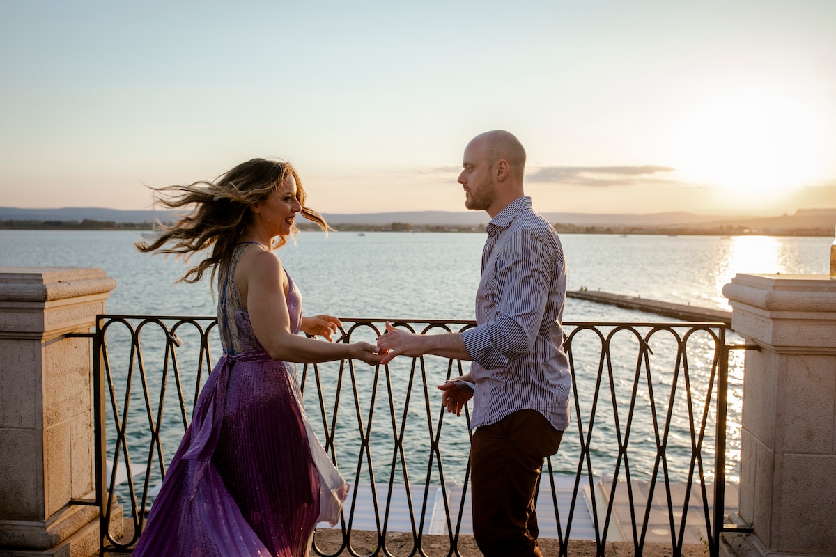 Taormina shooting couple at sunset