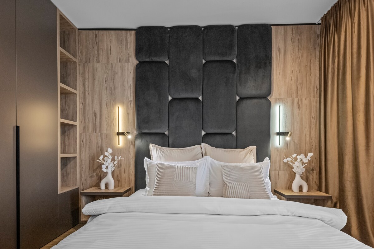 Amberline Residence — A spacious, peaceful, and modern apartment located in a new, elegant building. Designed with comfort and style in mind, it offers a unique blend of warmth and sophistication, featuring contemporary finishes, plenty of natural light, and a calm atmosphere — perfect for relaxing after a busy day in the city.