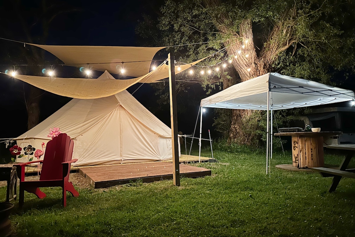 Unplug and unwind in a cozy creekside bell tent set on 36 peaceful acres of nature. Fall asleep to the sound of flowing water, enjoy fireside evenings under the stars, and wake up surrounded by woods—just minutes from Ellicottville. This glamping stay blends rustic charm with real comfort, making it perfect for couples, solo travelers, and nature lovers seeking a quiet reset. Expect a peaceful setting, thoughtful amenities, and easy access to outdoor adventures without crowds.