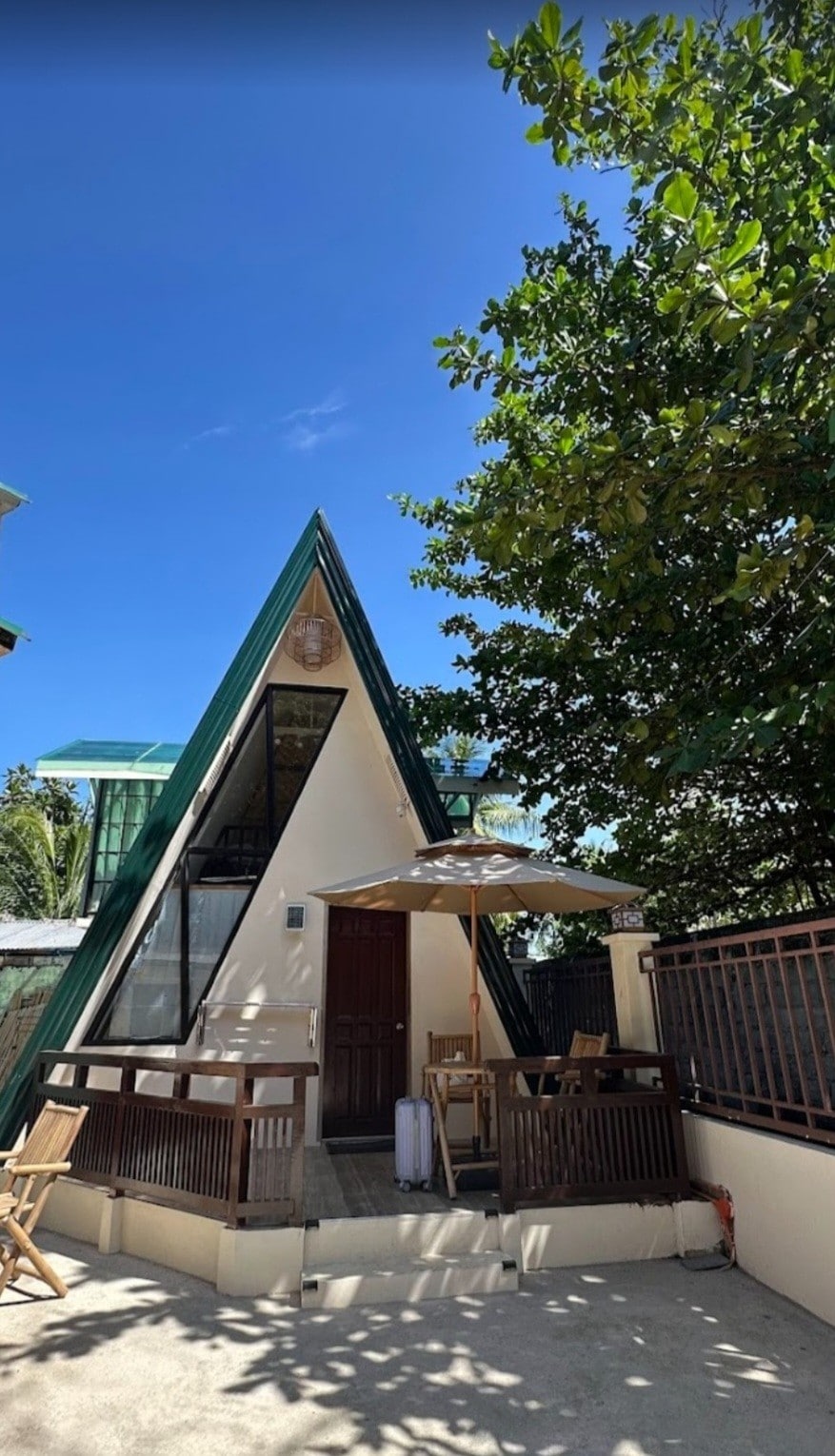 Experience the 1st & Only A-Frame Villas of Malapascua (A2) 2nd of 2 Tiny homes. Less than 5 mins walk from the port, Logon Beach, dive shops, central market, restos and close to Bounty Beach. Hot & cold drinking water Gated, clean and secured location w/ cctv cameras by the patios Equipped with 24/7 power generator with ATS in case of brownout, which is a concern in the island AC on all rooms with solar wall fans Heated shower, WiFi & Breakfast included 😎 Safety deposit boxes in each room