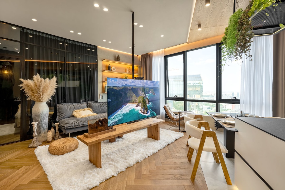 Welcome! We’re proud to offer one of the best guest experiences in the city. INDIGO is a designer apartment created for guests who appreciate architectural precision, calm luxury, and a refined living environment. Every element of the space is thoughtfully designed to support focus, comfort, and a sense of effortless order. Located in the Rams City residence, INDIGO offers privacy, security, and panoramic views, making it ideal for business travel, special occasions, or a quiet high-end stay.