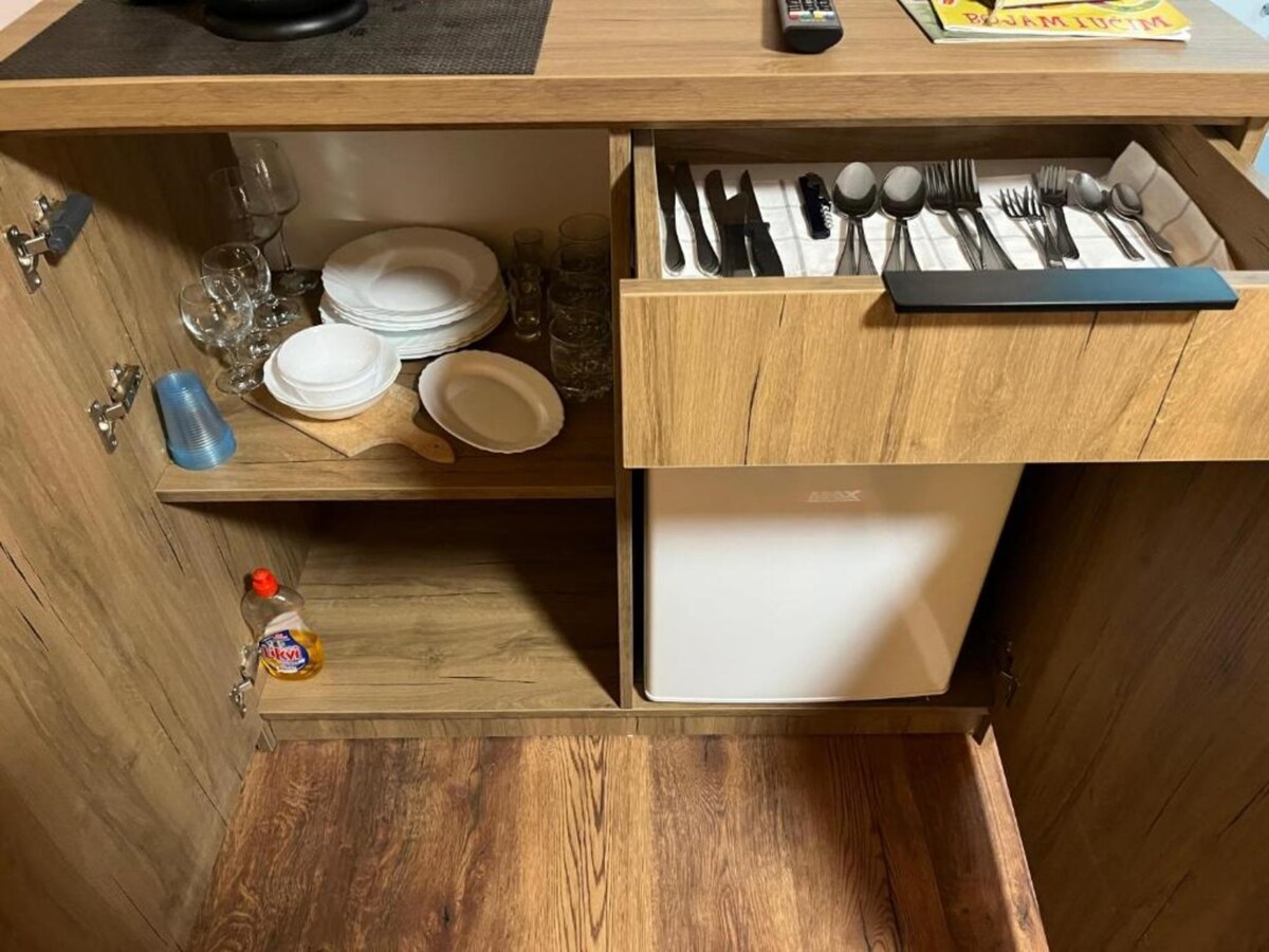 The appartement consists of a modern equipped kitchen and a sunlit living room with my TV-170 channels, free Netflix, Prime Video and wi-fi, a large bright bedroom with a comfy king-sized bed, fitness equipment, office desk and TV. The sofa in the living room can also serve as an additional bed for a 2 children. Appartement is on the ground floor wits its own parking space and storage space for skis. It is located in the center of Babanovac near by ski-slope.