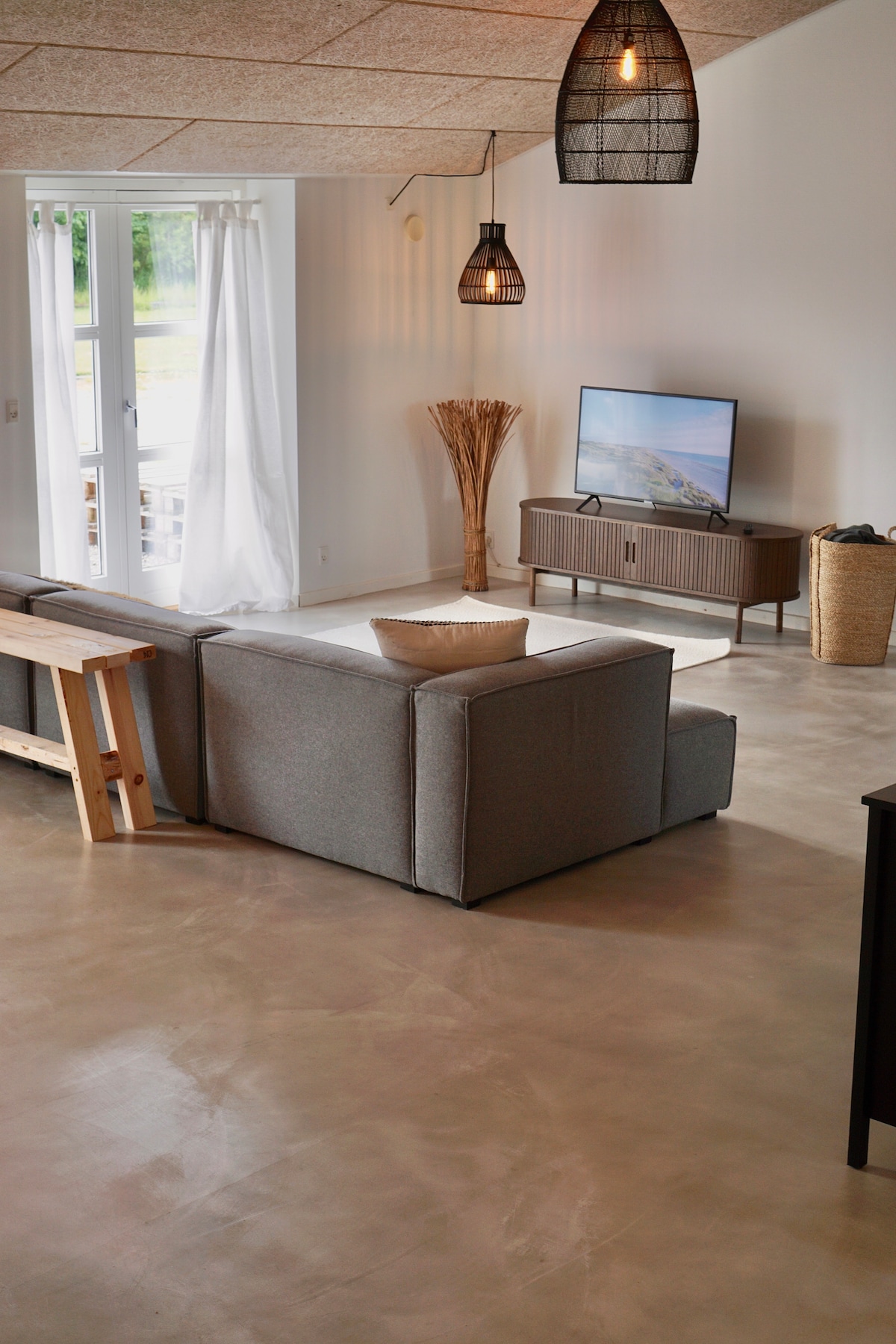 Freshly renovated barn, converted into minimalistic modern apartment. Full kitchen, shower bathroom with sauna and one bedroom with a queen size bed. Open living and dining area, high ceilings and big windows facing west. Indoor fireplace and floor heating in kitchen and bathroom. Surrounded by wide open views, with the dunes in sight towards west and into the countryside on all sides. Sunrise and sunset fully visible.