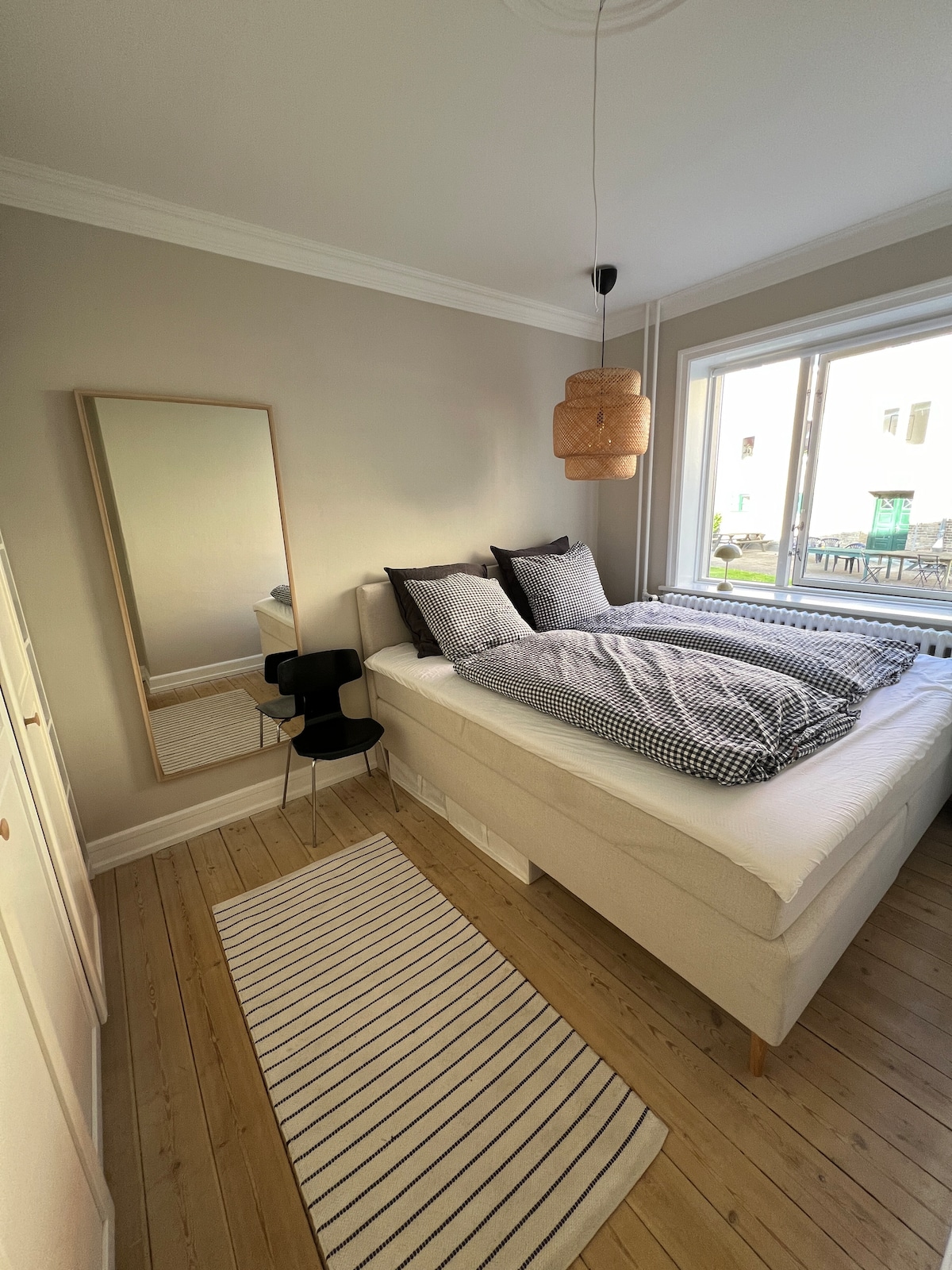 Beautiful and spacious apartment in beautiful Mejlgade. Location in Aarhus C with walking distance to good restaurants, shopping, parks, Aarhus Island and a lot of different attractions. The apartment is designed with large windows, which provide natural light. It is decorated with large pictures, mirrors, plants, etc. to create a cozy atmosphere. Perfect for the couple, the family, or a group of up to 4 people (5 if one person sleeps on the sofa - write a message if this is necessary).
