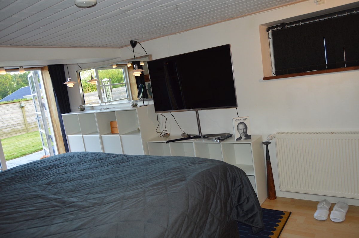 Nyd det enkle liv i denne hyggelige lille lejlighed, der er placeret i en høj kælder i et roligt kvarter med naturområdet "Kongens kær" lige uden for døren. Gåafstand til Vejle centrum (1,5 km) og 30 km til Legoland og Billund lufthavn. Lejligheden består af 2 soveværelser med en 3/4 seng (140 cm bred), en lille opholdsstue med daybed, spisebord og tv samt bad/toilet. Ideel til den lille familie eller to par. Der er elkedel, minikøleskab, kaffe/te og service, så man kan lave en let morgenmad.