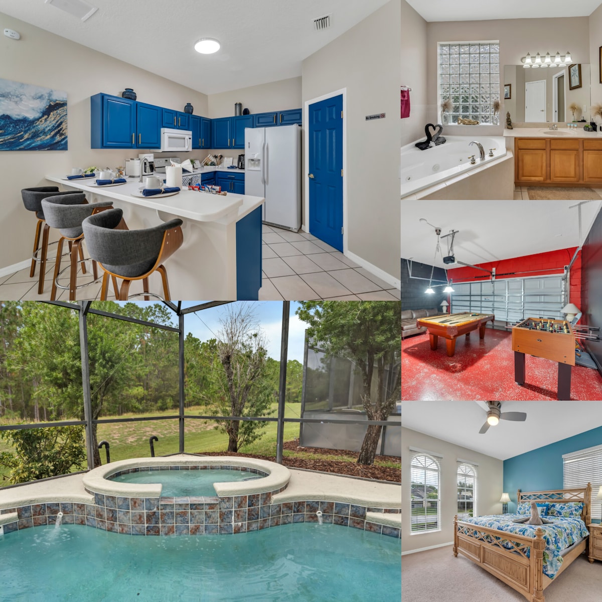 Unable to book this house? Don't worry! Check my profile for similar homes that might suit your needs. WE HAVE 24/7 CUSTOMER SERVICE! Tired of visiting the parks every day? Step inside of this beautiful 2,263 sqft house and discover a private BBQ, pool and game room specially designed to entertain your family and keep the fun going. Enjoy the resort's clubhouse with a restaurant, pool with water slide, spa, lazy river, gym, playground and a tennis court. Experience the vacation of a lifetime!