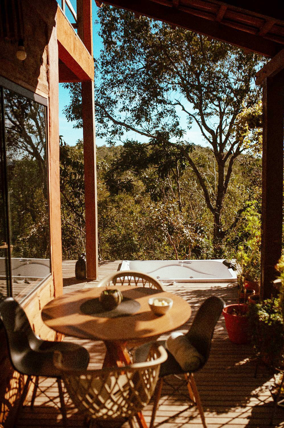 Accommodation located 1 km from the center of Vila de São Jorge, Chalé Toca da Onça offers comfort, coziness and elegance in just the right amount! Built with mixed bioconstruction techniques, natural paints, renewable energy, a gas shower and an unforgettable hot tub, it is the right choice for your rest and refuge in the midst of nature, with an exuberant view of the Chapada dos Veadeiros National Park! It is close to the abyss waterfall and the window overlook!!! Unmissable!