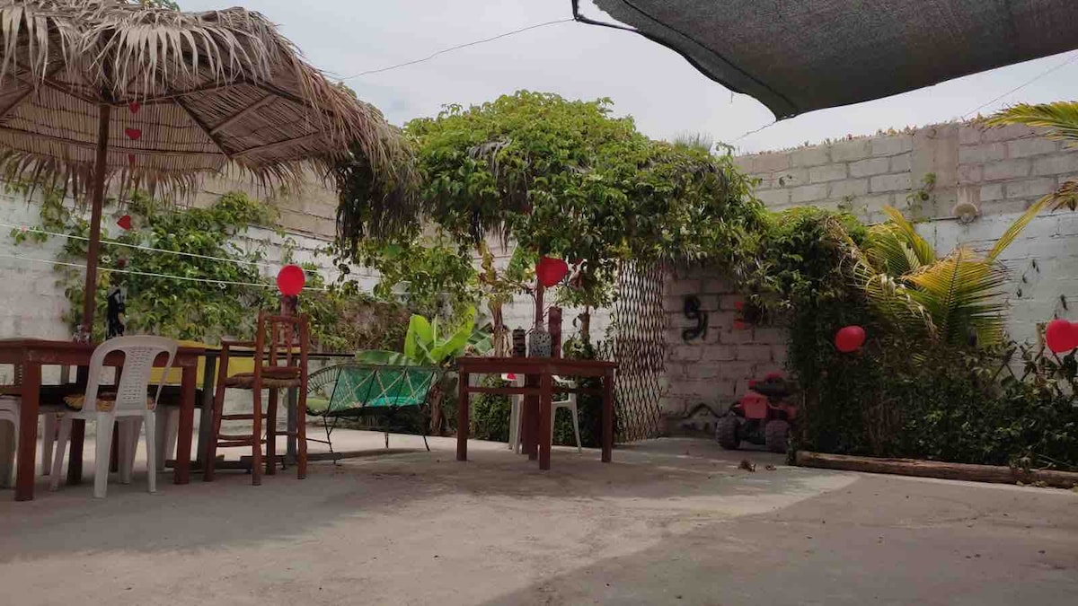Relax in the most exclusive and quiet area of Camana with the whole family With a wide beach with separate Warachas to preserve your privacy. Different ocean views from the 1st floor and from a large terrace. In front of the park so the children don't wander off. In addition to enjoying the pool.