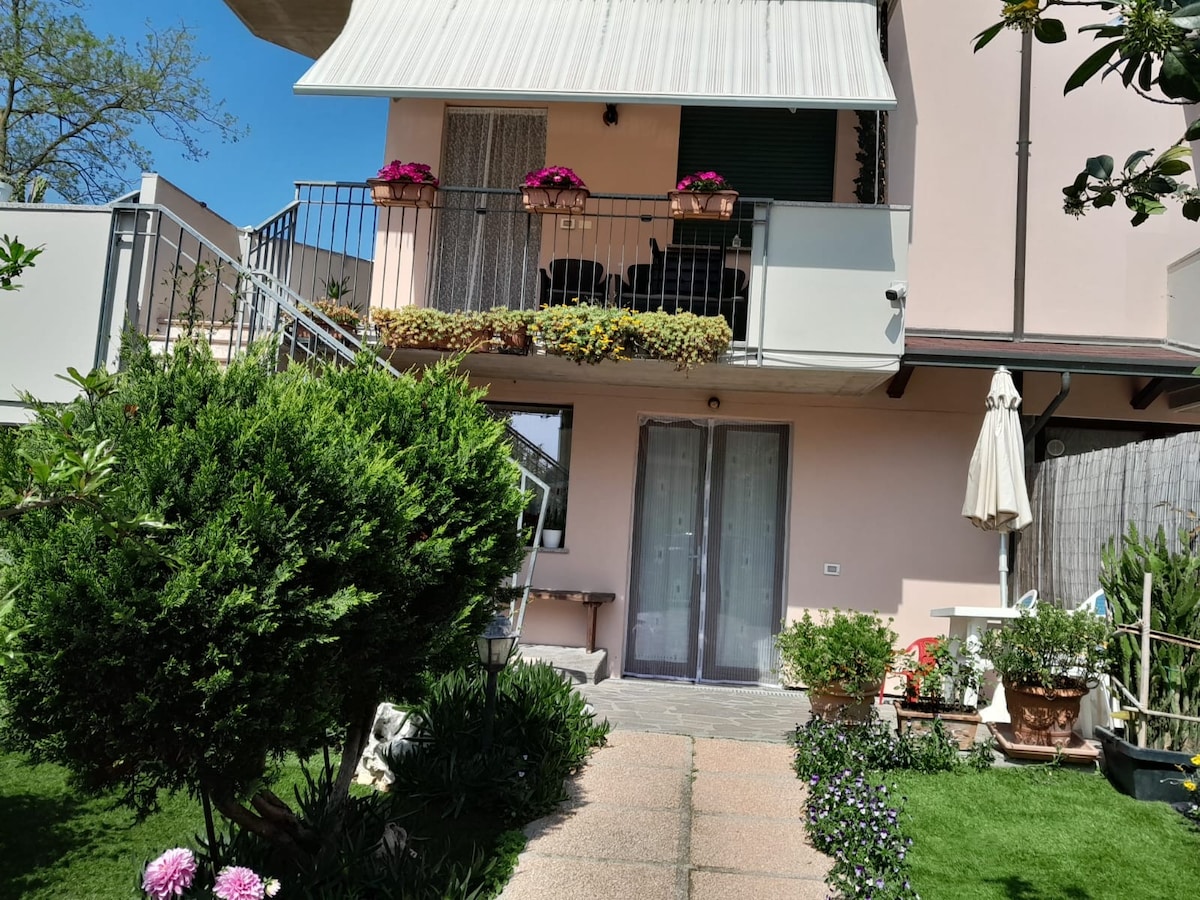Independent apartment, surrounded by a large garden where you can relax. Located on the first floor of a villa surrounded by greenery, a stone's throw from the city center and the promenade. It has three newly furnished bedrooms and two bathrooms that can be used by guests. In the kitchen-living room, equipped with a stove, oven, refrigerator and dishwasher, you can relax with wifi available (also present in the rooms) or television.