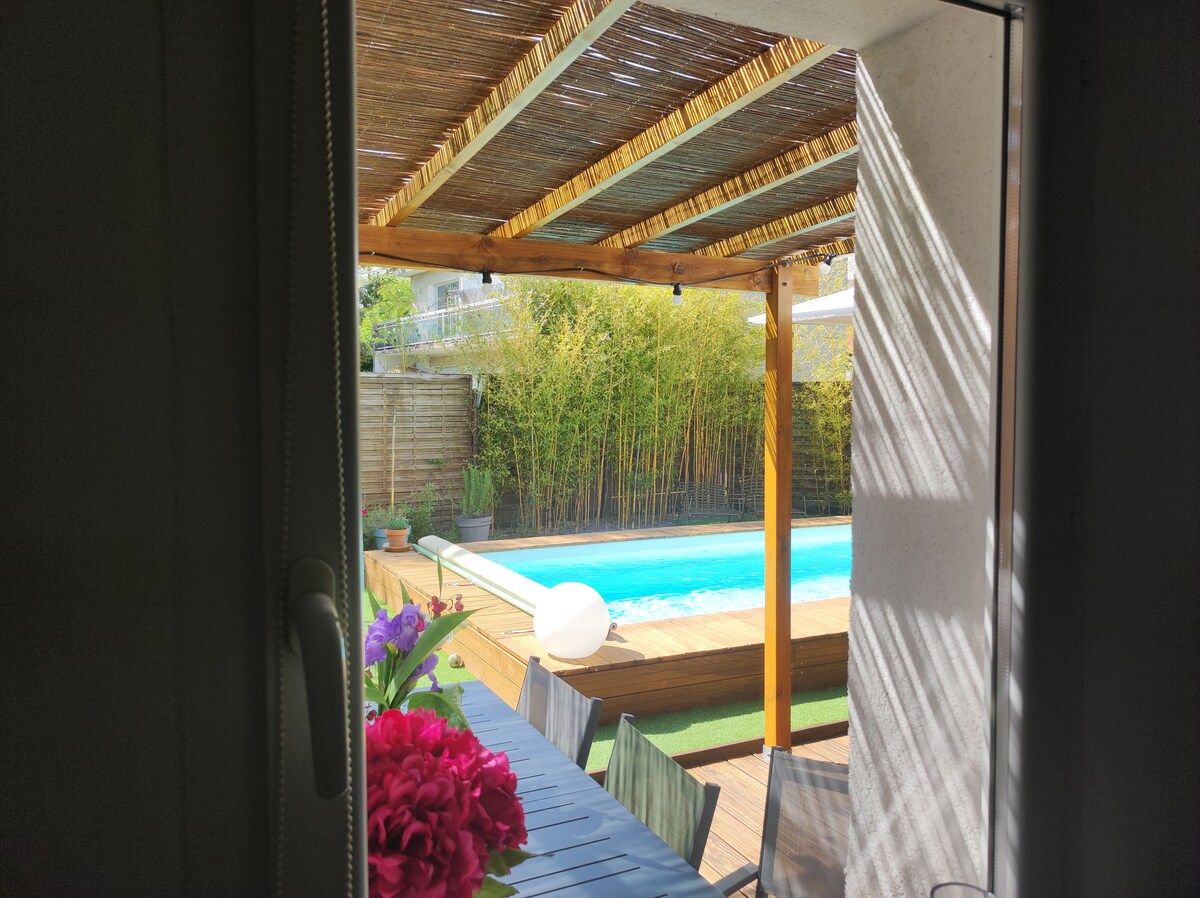 Charming lodging of 3 rooms in a quiet, green environment. The apartment is independent but adjoining our house. - Declared travelers can enjoy the pleasures of our pool, which is shared with us! Anne Marie and Serge welcome you and if you wish, present the Region, the Pessac Léognan vineyards, Bordeaux, the Pyla dune and the Arcachon Bassin