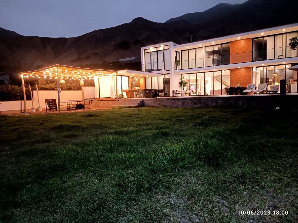 Beautiful and modern country house located in a condominium near the Lurín River in the town of Chontay, east of Cieneguilla. Surrounded by mountains and vegetation with the relaxing sound of the river and birds in the background, you will feel in the middle of nature. Ideal for disconnecting from the stress of the city and for nature lovers. And with enough games for the kids to disconnect from electronics. The pool and games are located inside the private house.