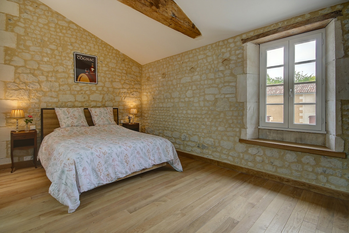 Luxuriously renovated, air-conditioned retreat in the heart of the Cognac region. Blending modern comfort with rustic elegance making a peaceful base for exploring southwest France. Nestled in a quiet hamlet, the gîte is just a ten minute drive from a lively town with restaurants, cafés, beauty spas, a cinema, and essential services—including a hospital—ensuring convenience without compromising tranquillity. Perfect for exploring the area by car, see the Guest Access section for details