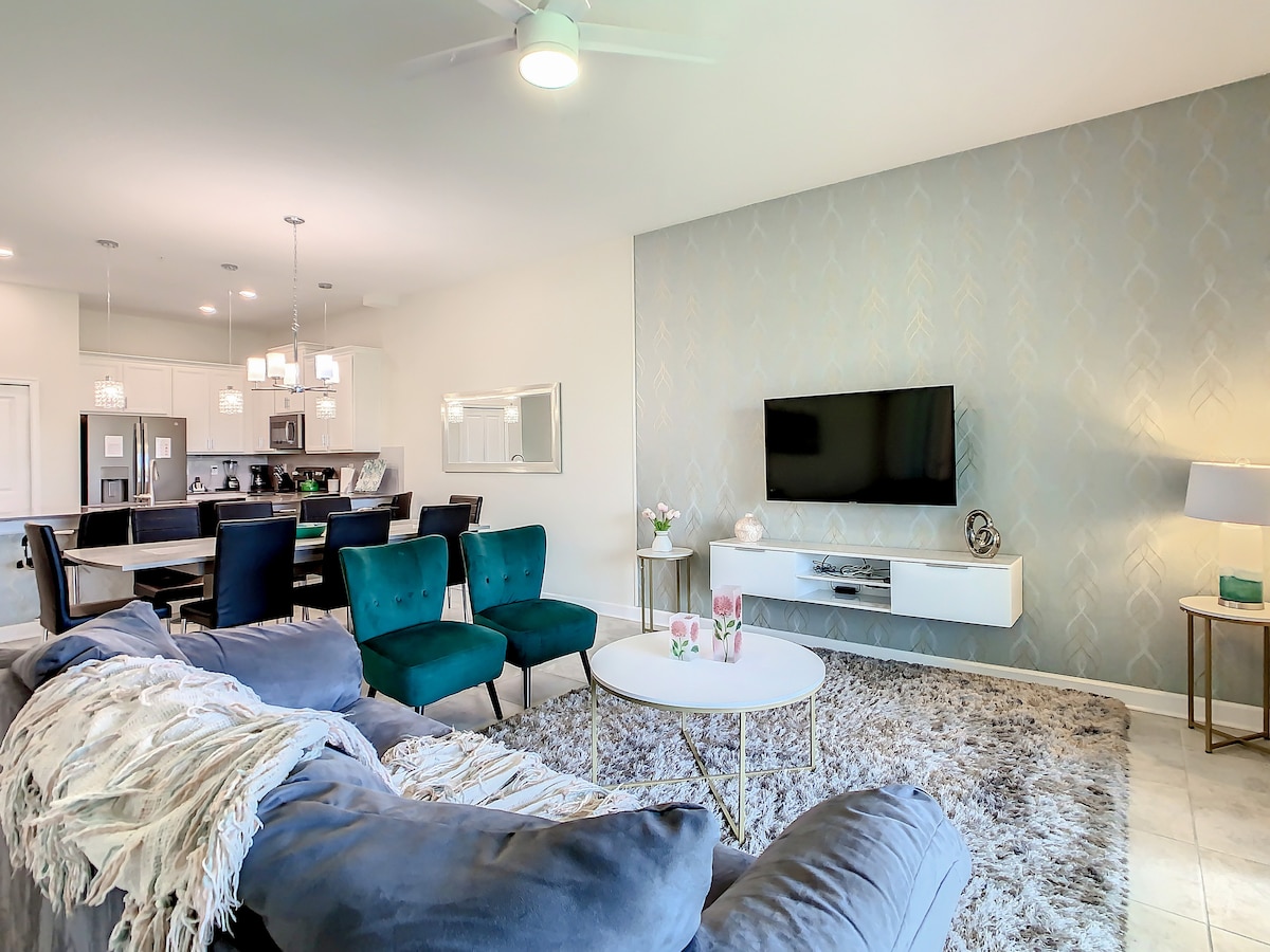Welcome to our vacation home that is 15 minutes away from Disney! Comfortable Living: Recently renovated townhouse with three spacious bedrooms that accommodate up to 8 guests. Game Room: Enjoy an air-hockey table, foosball table and an arcade machine Hot Tub: Private hot tub on a covered patio Baby Essentials: Our home is equipped with baby-friendly amenities. Modern Amenities: high-speed Wi-Fi, smart TVs, a fully equipped kitchen, and in-unit laundry facilities for your convenience.