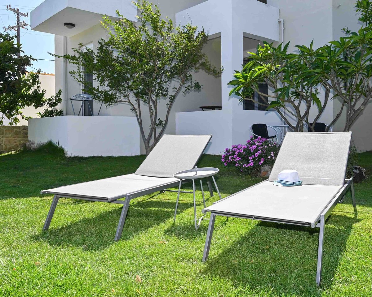 Feature a spacious bedroom with 1 double or 2 twin beds with bright colors and modern design. Also a cozy lounge where you can relax watching the satellite TV, a fully equipped kitchen where you can prepare the daily meals, a comfortable bathroom and a veranda with individual sun-chairs to enjoy the sun and the beautiful natural surrounding.