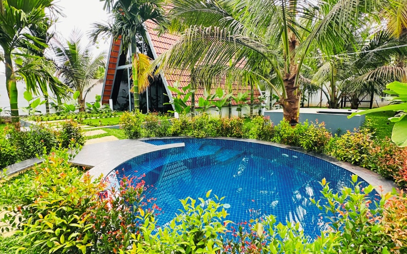 Bring the whole family to this great place with lots of room for fun. Private pool: A villa with a private pool can offer a tranquil and secluded environment for relaxation. Exquisite pool view rooms provide privacy with garden. within the villa confines, visitors can enjoy a personal swimming experience. plan to have a barbecue for the whole family at the kitchen or at the outdoor fireplace. You can also order great home cooked food or get food delivered from your favourite restaurants nearby