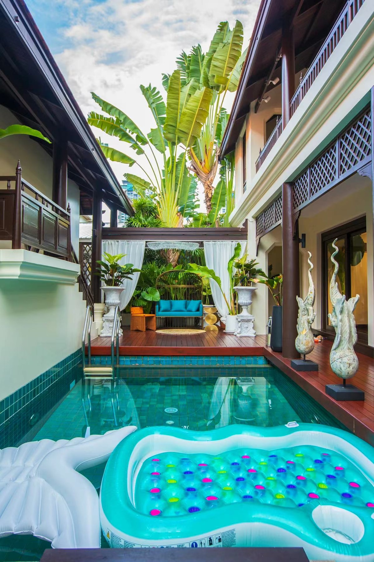 🌈 Where Thai luxury meets personalized living This isn't just a luxury villa - it's your authentic Bangkok indulgence experience 🥂 ✨ Highlights: Free Breakfast+Transfer ✈️,Pool Party 🍻, Garden BBQ 🍢 & Private Rooftop Cigar Lounge 🥂! 💁Daily Maid Service:Housekeeping | Fresh fruits | Premium drink Tailored Services (service fee applies) 💆 SPA & Massage 🍷Cigar & cocktail lounge 🏊Poolside floating afternoon tea 🧑🍳Hotpot/BBQ feasts (Assisted Grocery Shopping & Meal Preparation Service)