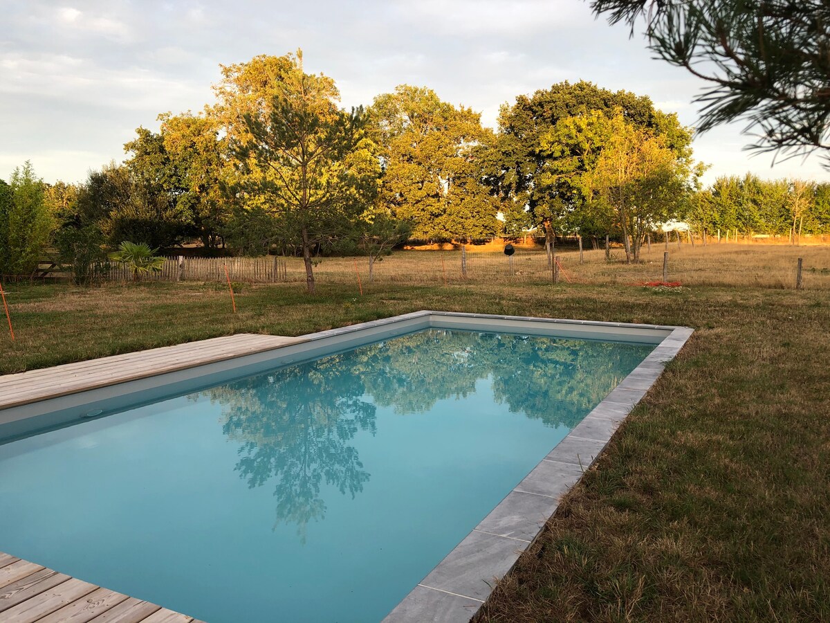 Our 135 m2 cottage is adjoining our home. It is a 1880 Percheron farmhouse restored on a one hectare park with heated indoor pool (8 m x 5 m) accessible free of charge from April to end of September. The single-story accommodation was restored in 2020 and comes with full amenities. Sleeps 6 + a baby (free equipment on request). Bookings: weekly during school holidays or for 2 nights minimum outside school holidays.