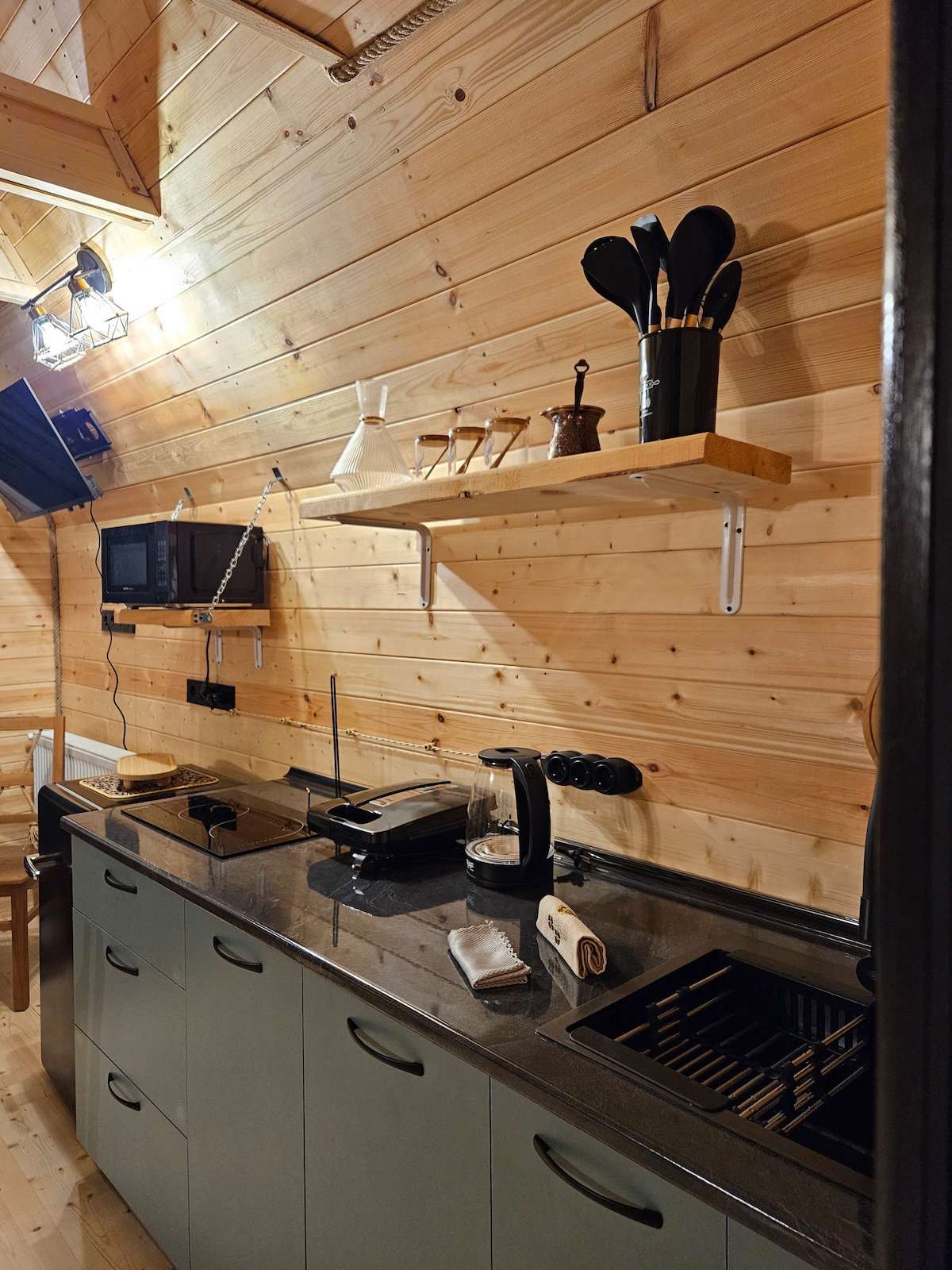 ● Electric stove, kettle and everything you need to cook ● 15 Mbps stable internet ● High-quality bed linen, bathrobe and towels ● Stunning view from еру panoramic window in the bedroom ● Large private area for guests only (2000 sq.m) ● Free parking on site