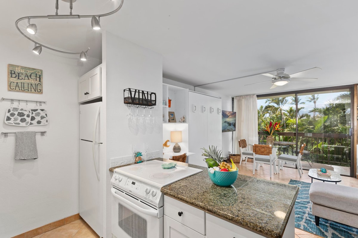 This condo at Maui Vista with a view of the ocean off in the distance is comfortable and cozy and situated over the pool area for a great resort-style view. You'll love the feel of this space and you'll have a lovely time being within easy walking distance of scenic beaches, delicious restaurants, lively bars, super shopping, mesmerizing surfing, and fun in paradise!