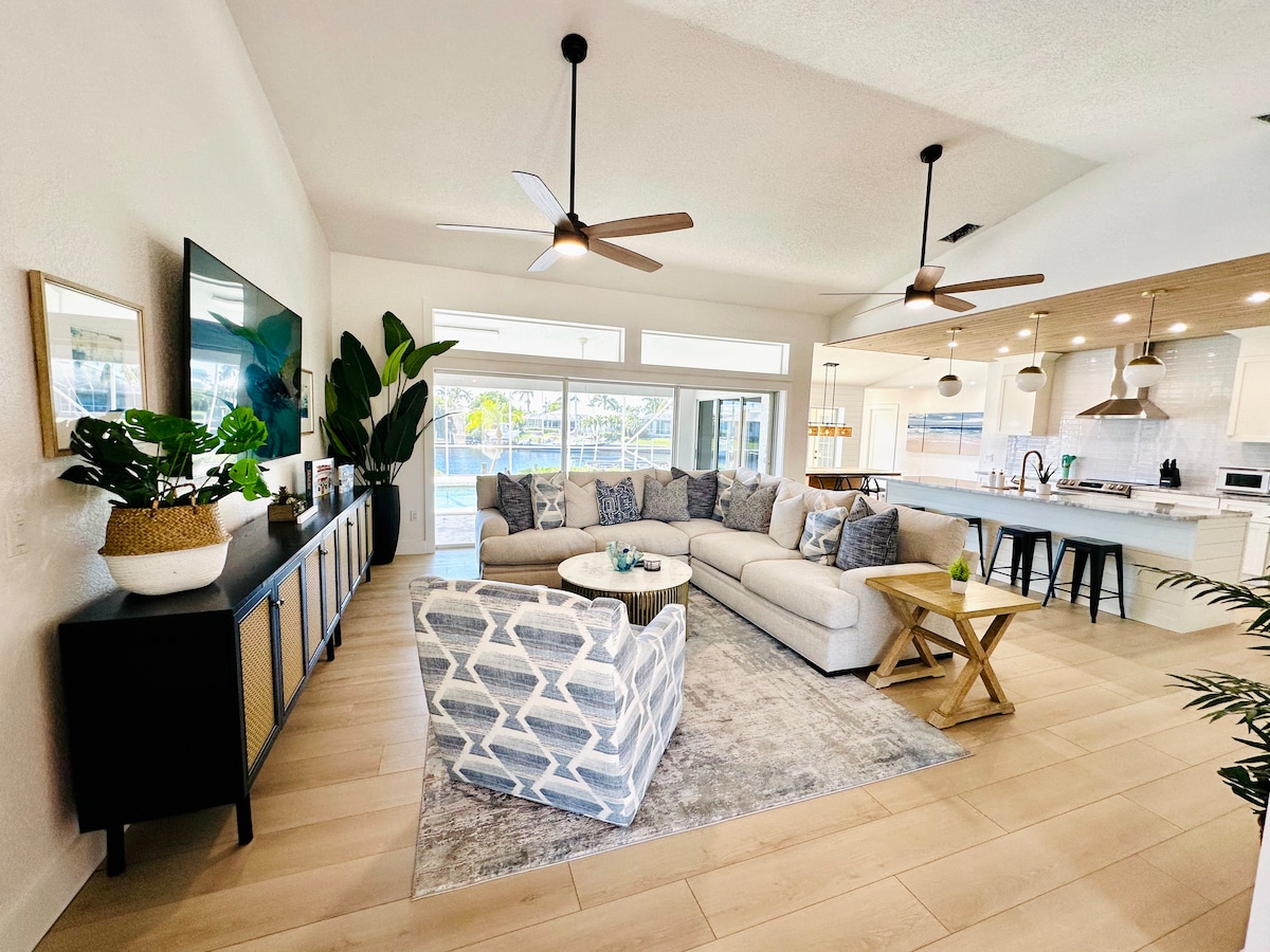 NEWLY RENOVATED LISTING- LOCATION! MODERN HOME-HUGE HEATED SALT POOL/SPA—65’ DOCK-1 BLOCK TO FISH VILLAGE •Modern, newly updated home with open layout allowing for enjoyment of the cool waterfront breezes. One of the closest rental homes to Fisherman’s Village at 1 block. AMAZING PRIME WATER VIEWS AT END OF CANAL. •Home includes 2 electric bikes to make it easy when exploring nearby trails. •Includes 2 tandem kayaks, 4 trail bikes, 2 fishing rods, 2 beach chairs.