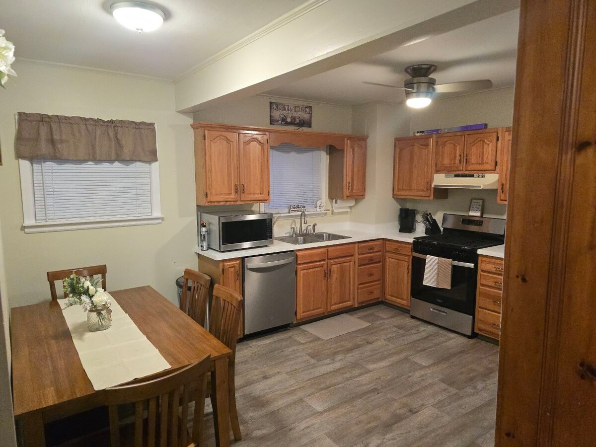 1950's renovated house with lots of original character next to Hawks Nest State Park and close to 2 more State Parks, in a quiet neighborhood and within a few minutes to all the New River Gorge National Park has to offer. 15 minutes from historic Fayetteville and the New River Gorge Bridge, central to whitewater rafting and rock climbing companies. We have 3 outdoor spaces and a bbq area. Our covered deck is 18' long and has a picnic table and other seating and the front porch has a nice swing