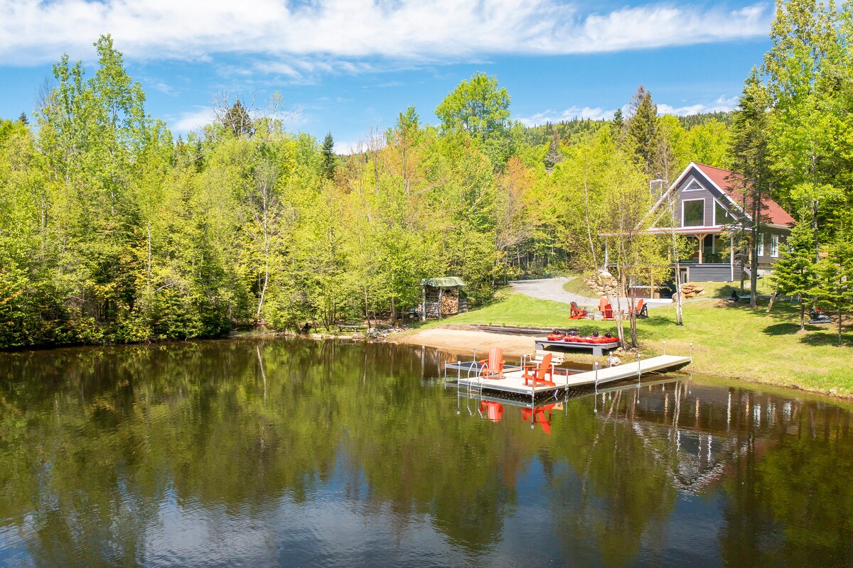 Large chalet that can easily accommodate up to 14 people! With an indoor wood fireplace and its outdoor spa, this cottage will make your stay more enjoyable! You will be delighted by the fully wooded terrain ideal for off-trail snowshoeing in winter or discovering nature in summer, but above all by the swimmable or navigable lake for small/mini boats available on site. This chalet will meet all the activities of the family! *Dogs may be aloud when asked.