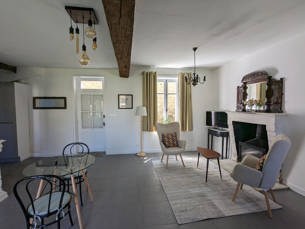 Cosy renovated farmhouse in the heart of the Cognac region, with shared pool and wheelchair access. Situated in Grande Champagne, the house is ideal for families and offers a country-style living environment. Spacious living room with wood-burning stove (wood available). 4 en suite bedrooms (one with wheelchair access). Private wooded garden. Cool in summer! Access to a large swimming pool. High-speed internet connection. 5 bicycles available on site (4 adults and 1 child).