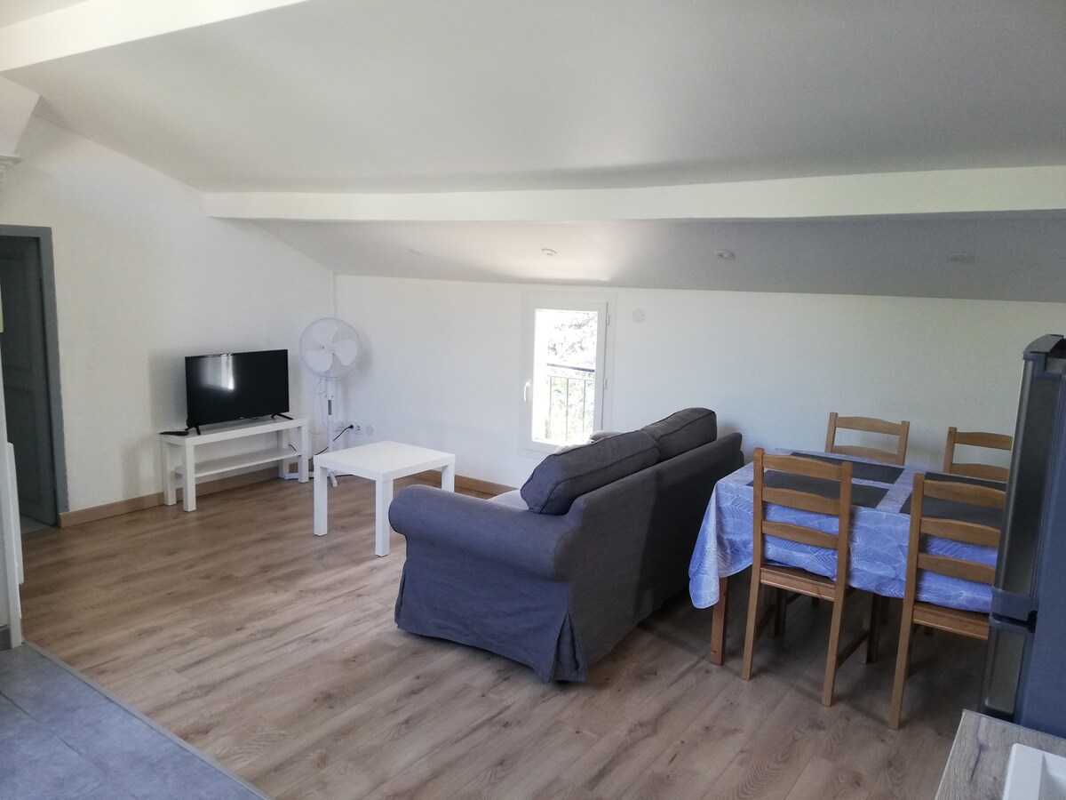 Studio 18 m2, well-equipped, very functional. 500 m from the city center or the body of water. Thermal Baths: 3.6 Km, ski slopes: 40 minutes! Walking or cycling, cinemas and municipal pool nearby! Internet access, DTT TV, pets accepted. With tranquility and a nice view...