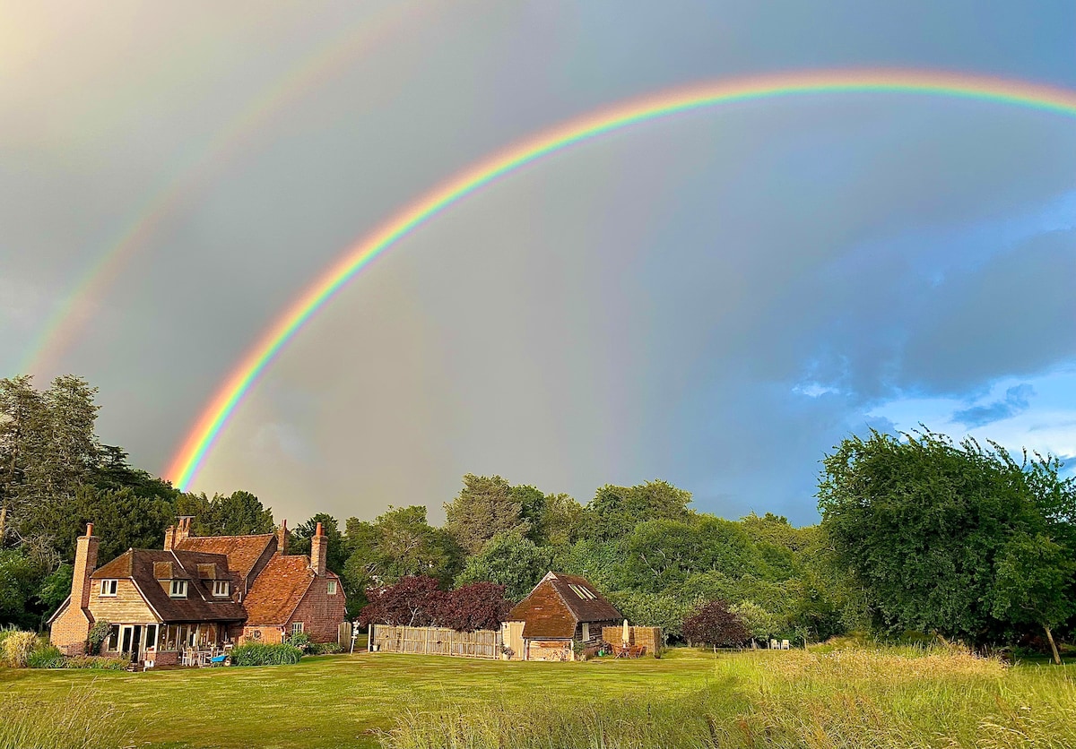 2 x king size organic bedroom-en-suites, with off street parking, great base for work or vacation, my Italian cousin Angelo, calls it " Tuscany in the Chilterns " home to "Midsummer Murders" ,"Wind in the Willows" and Agatha Christie's, "Miss Marple & Poirot mysteries", 200 year old country barn two fields from the Thames, beautiful views, and one of a few areas in the UK where you have hills and valleys and a navigable river wrapping around them, encircled by picturesque riverside towns