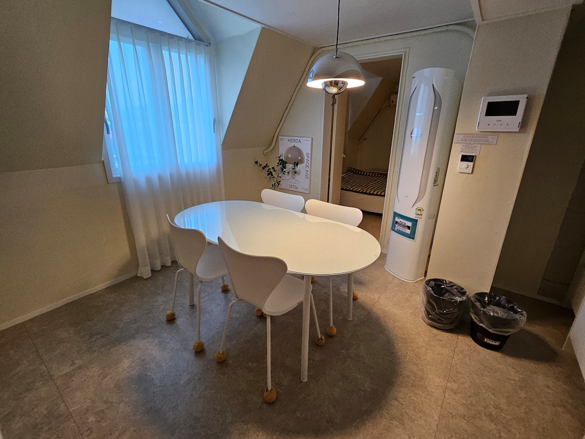 "Han stay" is more than just a place to stay in a travel destination. It's a space like a' second home' where you can stay for a while. A clean kitchen and comfortable bed are available, making it great for staying with family or friends. The accommodation is located in a quiet residential area, so you can enjoy a comfortable rest, and it is close to Cheongju Express Terminal, so it is convenient to move. There are marts, convenience stores, and restaurants nearby, so it is very convenient to live. It has all the necessary amenities such as Wi-Fi, TV, and kitchen facilities, so you can stay comfortably like home, After the day of your trip, "Han stay" will warmly welcome you. 🌿