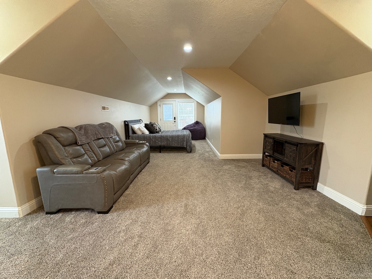 Welcome to our Duck’s Nest! 4-mi to Eugene Airport, 5-mi to UO & Autzen! Large private studio apartment w/ king size Casper bed, large sectional couch, 55in 4k TV w/ (Ad Free) Disney+ & Hulu. Kitchenette with dining table, microwave, mini fridge, & coffee machine w/ k-cups. Full bath w/ body wash, shampoo, and conditioner dispensers, laundry room w/ washer and dryer. Backyard has personal enclosed gazebo. Sorry, no parties. Come stay with us today! And Go Ducks!
