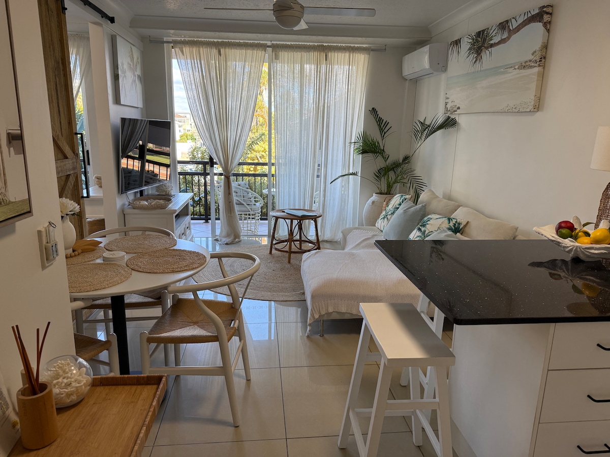 Escape to our cozy 1-bedroom, 1-bathroom apartment on Chevron Island, perfectly positioned for a relaxing Gold Coast getaway. Enjoy stunning east-facing views of the Surfers Paradise skyline from your balcony. A short 9-minute walk to patrolled beaches, Surfers Paradise precinct, and the renowned Home of the Arts (HOTA). Cafes, restaurants, and boutique shops are just steps away. Stylish open plan living, updated kitchen, full HD Android TV with Netflix, Superfast Wi-Fi, A/C and ceiling fans.