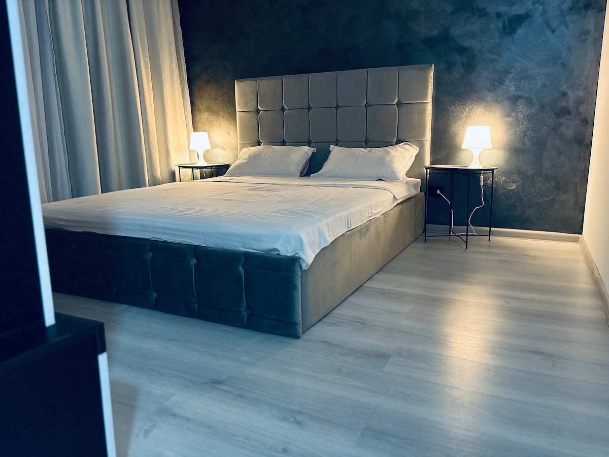 Enjoy a stylish experience in this centrally located home in Militari Residence. This apartment features: Private parking with barrier Walls decorated with Venetian Stucco 4K smart TV with Netflix Air conditioning The zone offers: indoor and outdoor swimming pools, wet and dry sauna, jacuzzi, fitness center. The distance to the Wellness center is 500m, and to Aqua Garden 550m, approximately a 7-minute walk. The price for pool access is 70 RON/person.