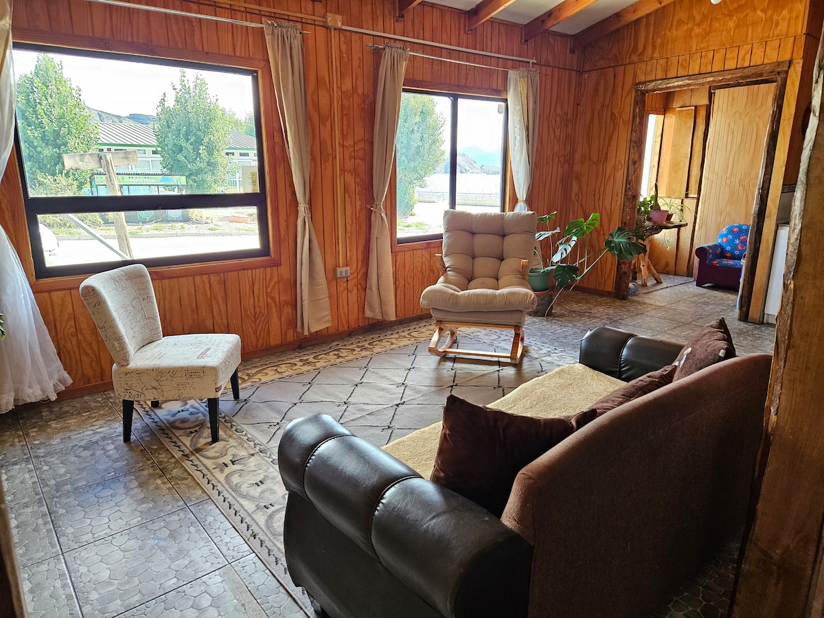 Disfruta de este encantador lugar, cerca del Lago General Carrera a pasos del centro de la ciudad, con vista a la plaza del viento, a 4 cuadras del Puerto y a 1,5 de la plaza de armas.