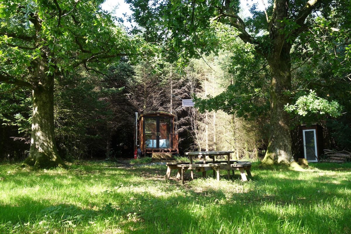 I spent 19 months in a shed making this from scratch, and it has my heart. It's designed to meld the security of home with the whims of the wild. There's a bus windscreen above the bed for star/cloud gazing, your own private woodland clearing, a woodburner, and all you need for good dining. It's totally secluded, you won't see anyone or visa versa. Now featuring a hot outdoor shower among the trees, running hot water inside, and Wi-Fi for the WFH crew.
