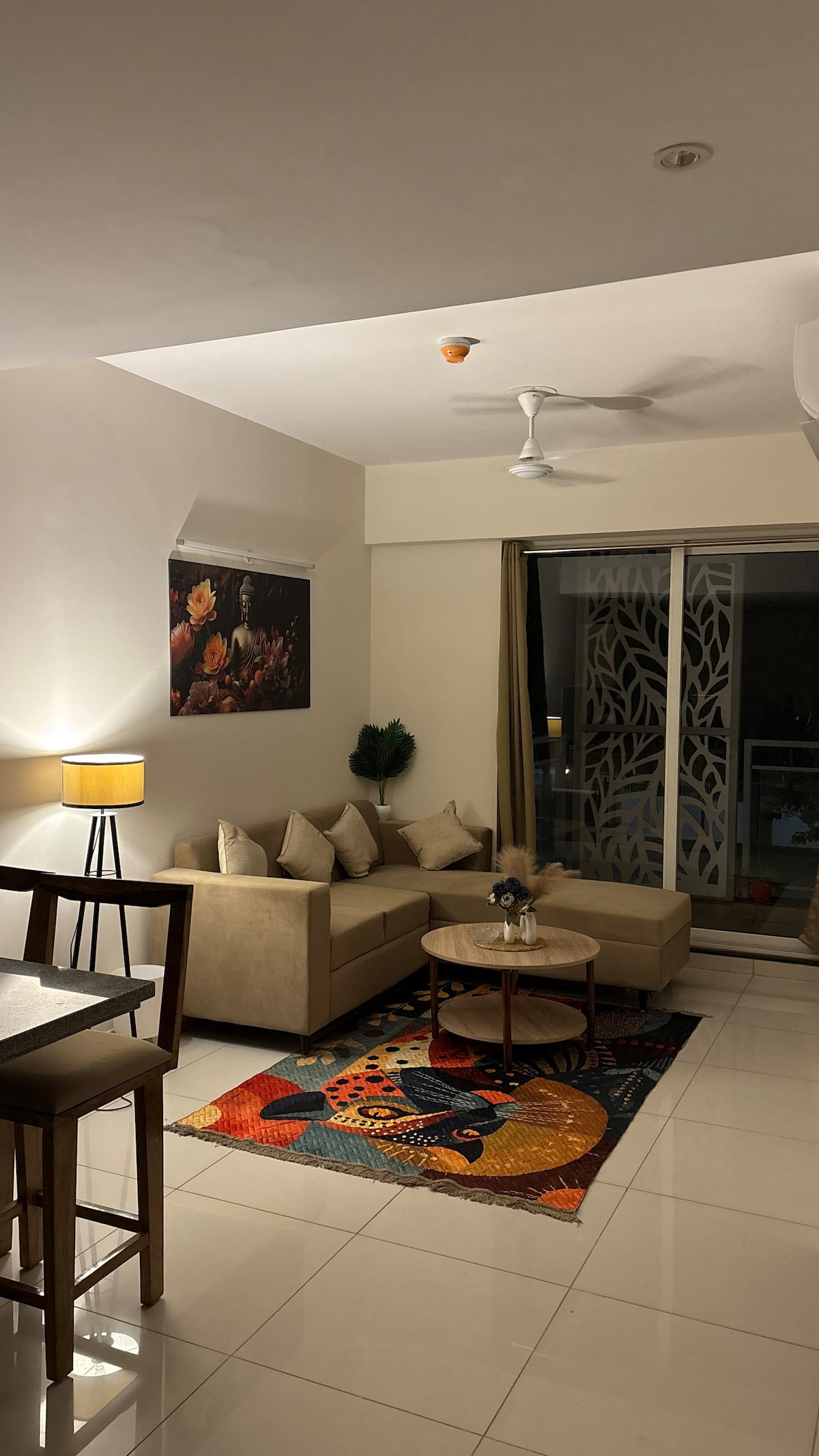 Step into a calm, sun-kissed retreat designed for effortless comfort. This thoughtfully styled 1BHK on the 6th floor offers soothing views, warm interiors, and a relaxed, homely vibe. Start your mornings with soft daylight, unwind in the cozy living area, and enjoy the convenience of a lively market right downstairs having cafés, food joints, pharmacy, salon, laundry, and more, all within steps. Simple, serene, and perfectly located, this space is made for easy living.