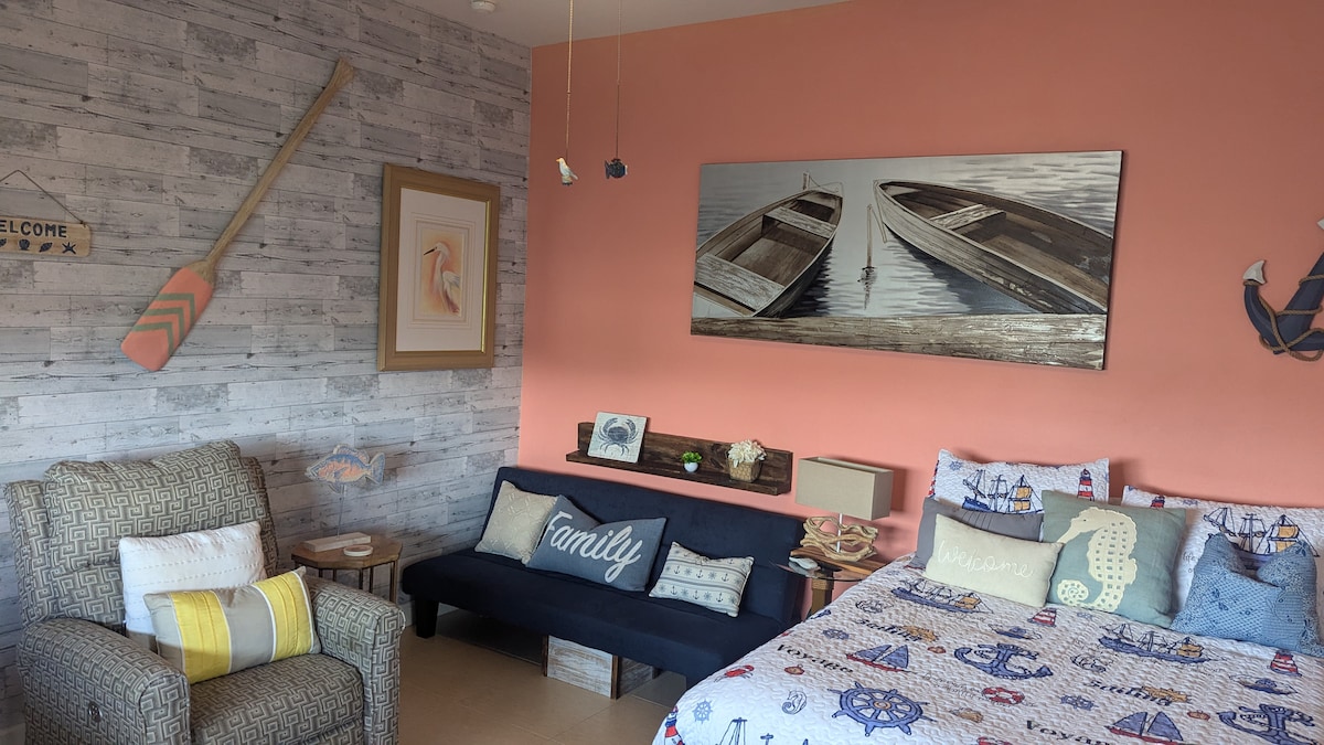 Gorgeous newly renovated private one King bedroom with en-suite bathroom. This 1st floor studio has modern updates with new furniture, comfortable mattress, fluffy pillows & luxury linens. Small refrigerator, microwave & Keurig in studio for guests to use. Just BLOCKS to the best beach where the sunsets are divine at Vanderbilt Beach. Easy walk to the Ritz Carlton Naples Beach Resort with the finest ocean front dining. Enjoy beach activities including shelling, SUP, fishing, kayaking & more!
