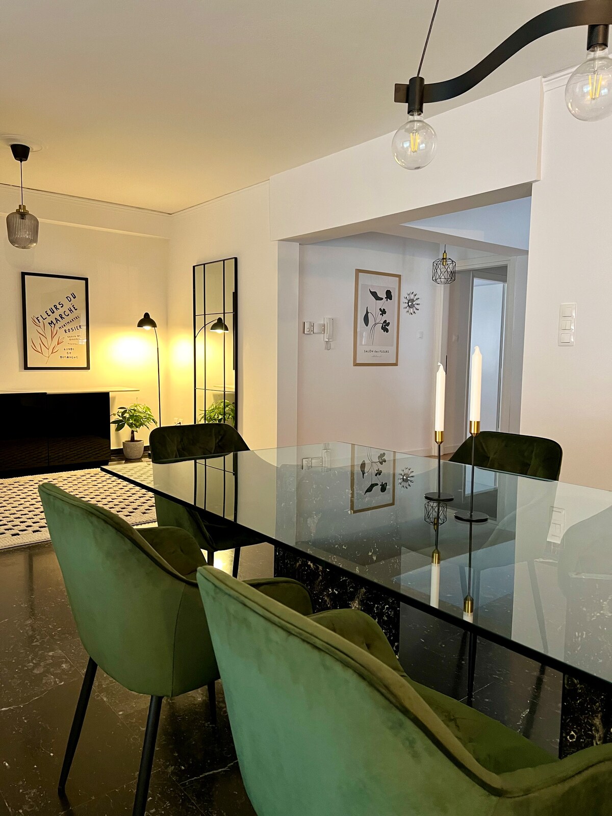 A truly unique royal-style penthouse just 8 min from Athens Airport. Like a private museum, it features antiques, oversized 200×220 beds, a large private terrace, and access to the rooftop for panoramic views and plane spotting. Ideal for families, with plenty of space and character you won’t find anywhere else in the area. Glass doors flood the space with natural light and frame the open sky — a one-of-a-kind stay that blends classic charm with rare city views.
