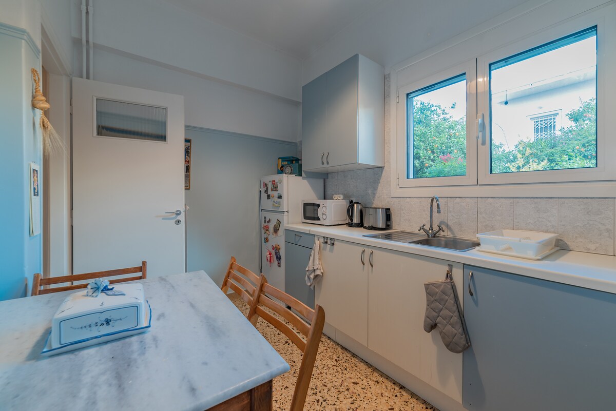 Ideal place for business destinations.The studio/apartment is only 10min away from the airport of Athens in a quiet neighborhood. Cozy and homy environment based on the hellenic culture with decoration from the early 50's. This hospitable studio is able to accommodate 2 people(King size bed) and another couple of adult people(Sofa/bed). You can enjoy our lovely weather with a traditional greek coffee outside in our garden and ask us for information about the local wineries!!