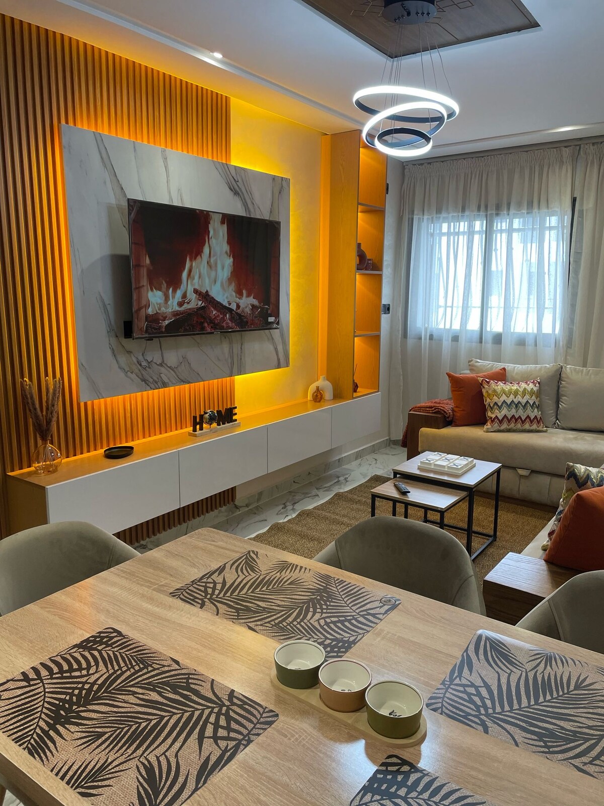 Ce logement affiche un style résolument unique.ce petit bijoux bénéficie d’un calme exeptionnel à Tanger à côté de la fameuse forêt diplomatique et la plage de sidi kacem Cet appartement est réservé aux couples mariés et familles et personnes seules c’est un espace non fumeur réservé aux personnes calmes et respectueuses et je serais reconnaissante si vous prenez soin de ses équipements et décoration faite avec amour